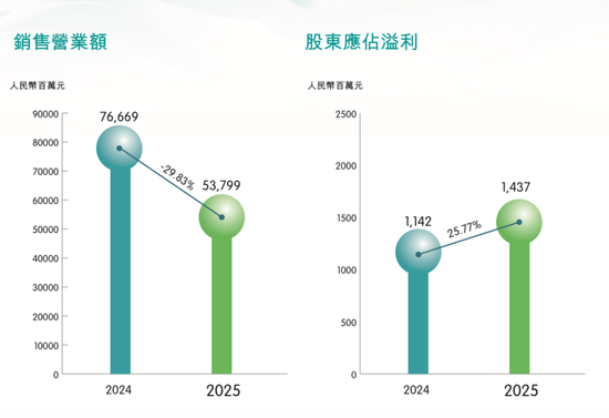 近日,港股上市公司天能动力(0819.HK)发布了2025年年报。数据显示,公司全年营业收入约537.99亿元,同比大幅下降29.83%;归母净利润却逆势增长25.77%,达到了14.37亿元。